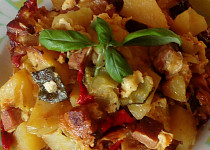 Vajíčka uvaříme natvrdo, necháme vychladnout 2. Potřeme rozšlehaným vajíčkem , propícháme vidličkou a pečeme v troubě předehřáté . Zajímavé menu doplní rajčata plněná kuskusem a dezert dvou chutí. Broskev plněná kuřecím masem. Sýrová roládka s křenem . Potřebujete na porce : rajčat 1g tvrdého sýra cibule kachní vejce petrželka olivový olej sůl, pepř. Stačí vám jen velké barevné papriky nebo rajčata a pár surovin navíc. Než se rozpustí sýr, tak je to pár minut, když dáváte zapéct vajíčko , tak to trvá asi minut.